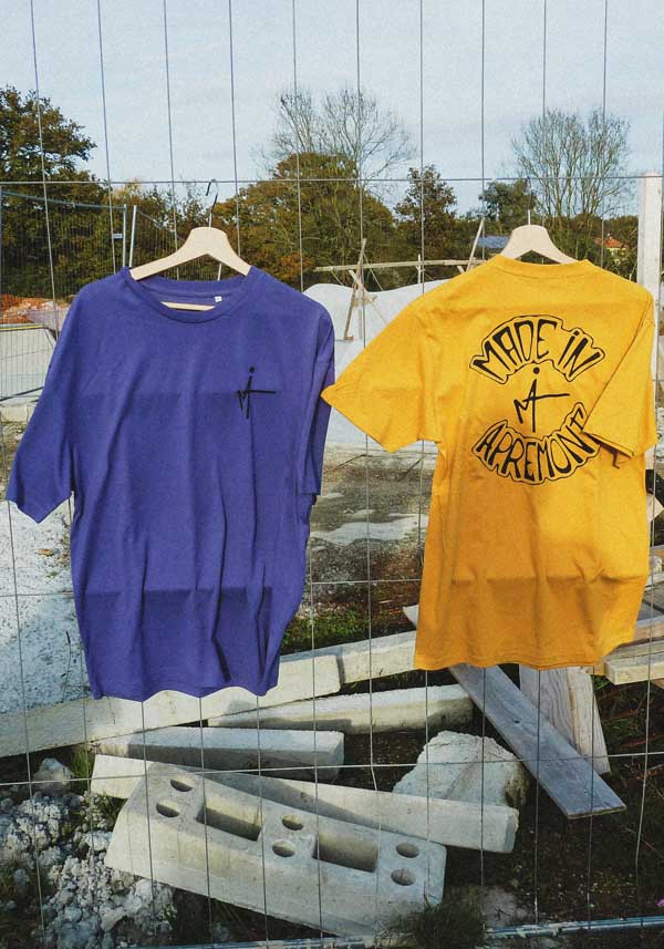 T-shirts et accessoires aux couleurs de MIA, pensés avec soin et porteurs de l’esprit du projet.